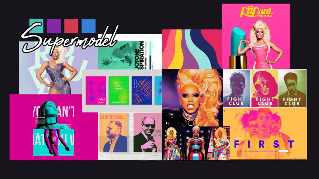Every element – from typography to colour palette – was carefully chosen to reflect the mood and aesthetic of that decade. Glossy finishes, vivid gradients, and bold type nod to the larger-than-life persona RuPaul embodies on and off the runway.